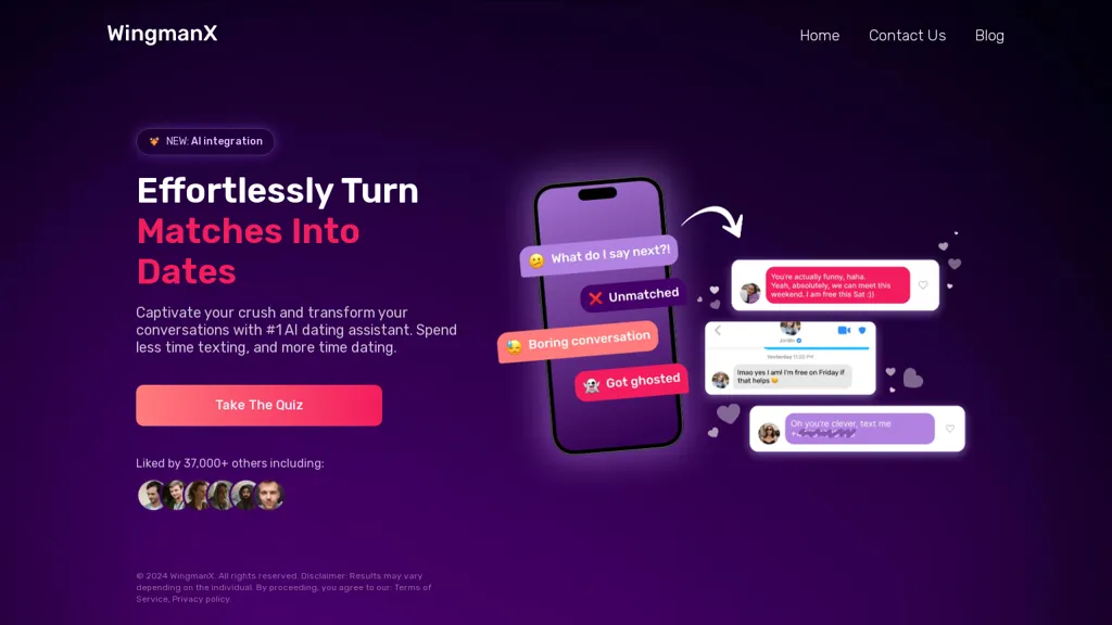 WingmanX AIデーティングアシスタントアプリは、デートの旅のためのスマートなパートナーであり、リアルタイムの会話ヒントやカスタマイズされたRizzピックアップラインを提供し、どんなチャットでも輝けるお手伝いをします。より多くのマッチや意味のある返信、あるいは自信を高めたいと考えている方も、WingmanXはオンラインデーティング体験を向上させることを目的としています。
